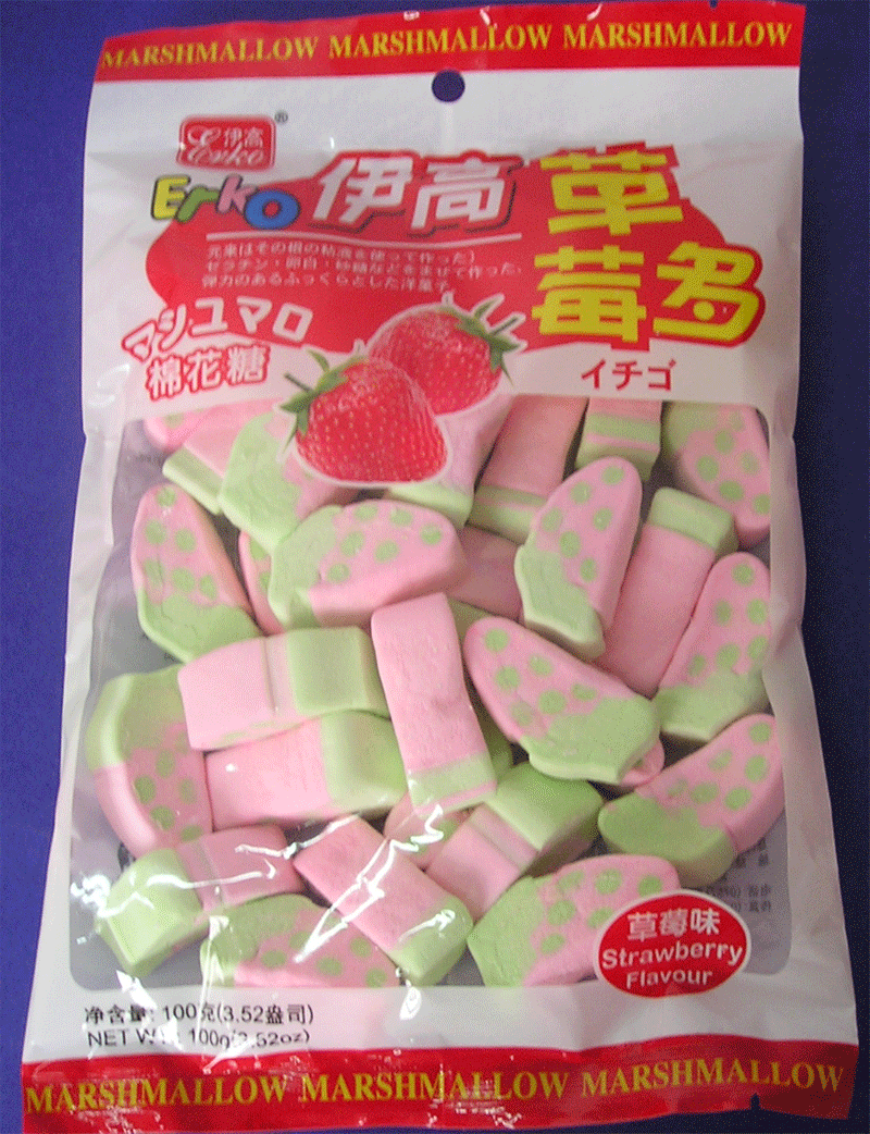 | Ingredients: | Sugar(38%)、Corn Syrup(35.1%)、Water(15.28%)、Dextrose(5.0%)、Gelatine(4.5%)、Corn Starch(2.0%)、Food Flavour(<0.12%)、Food Colour(<0.016%) | |