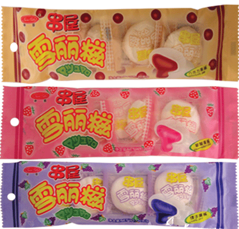 | Ingredients: | Sugar(41.5%)、Corn Syrup(32%)、Water(15.7%)、Dextrose(3.0%)、Gelatine(4.5%)、Corn Starch(2.0%)、Pectin(0.7%)、Citric Acid(0.6%)、Food Flavour(<0.12%)、Food Colour(<0.016%) | |